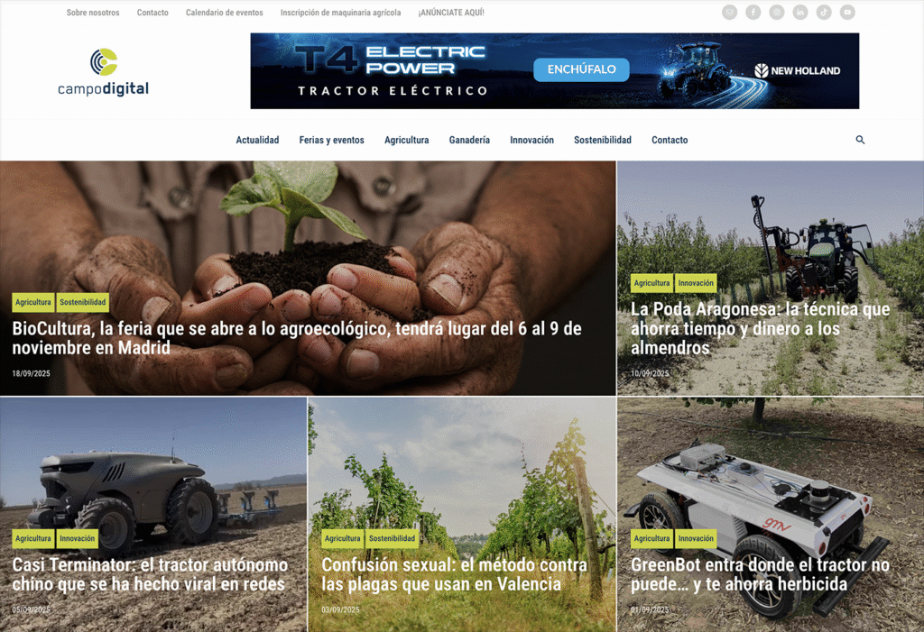 -“Campo Digital” es un medio especializado en innovación y sostenibilidad en el mundo de la agricultura y la ganadería. Nace tras 18 años de la experiencia de Núcleo Empresarial en el sector agrario. Nos dimos cuenta de que, aunque hay medios muy buenos desde el punto de vista de la comunicación, la tecnología y la sostenibilidad se trataban como una sección más, como una noticia más. Y vimos que es importante trasladar al mundo del campo, no solo al agricultor, cómo la innovación y la sostenibilidad afectan no solo a la productividad y la eficiencia, sino también a la forma en que el campo avanza hacia modelos más ecológicos. Algo de lo que la gente muchas veces no es del todo consciente.