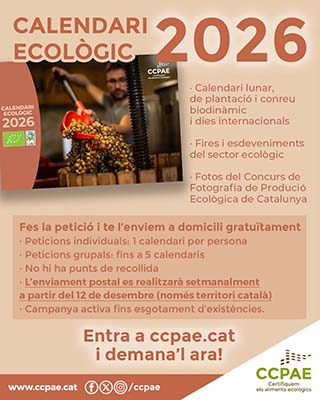 Desde el 21 de noviembre, ya está operativo el formulario de peticiones del Calendari Ecològic del 2026 del Consell Català de la Producció Agrària Ecològica (CCPAE) para recibirlo en casa de manera totalmente gratuita.